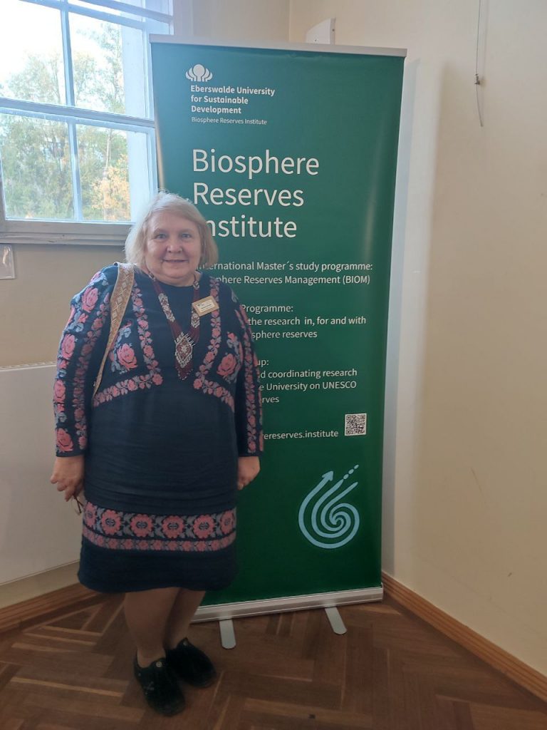 Within the session «Collaboration within MAB Regional and Thematic Networks», Prof. Dr. Viktoriya Khrutba from the National Transport University presented «Experience of Creating a Protected Area Research Community for Ukrainian Recovery». The presentation described the current situation in biosphere reserves and national nature parks of Ukraine, with a primary focus on identifying approaches to mitigate the impact of military actions on biodiversity preservation and environmental protection.